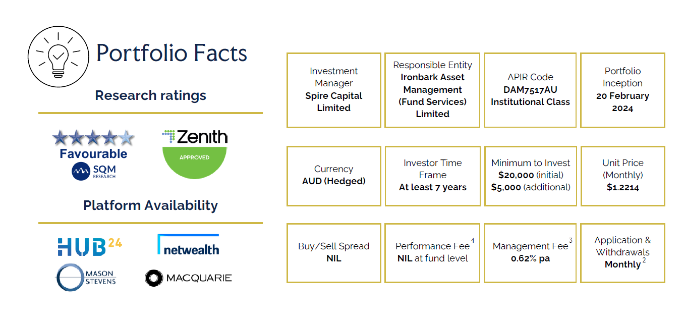 Please reach out to your financial adviser for more information on Spire Capital and our investment offerings. Spire investments are available on a range of administration platforms including Netwealth, HUB24 and Mason Stevens.