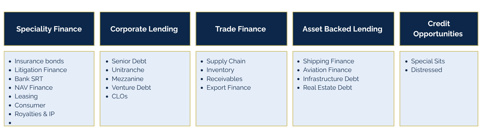 Private Debt (or private credit) includes any debt held by or extended to privately held companies (“the borrower”). It comes in many forms, but most commonly involves non-bank institutions (“the lender”) making loans to private companies or buying those loans on the secondary market. Private debt fund managers raise and manage funds with a wide spectrum of underlying investment strategies. For example, some private debt funds provide capital to private equity-backed borrowers to fund acquisitions, others fund real estate development projects and some invest entirely in the debt of distressed companies.