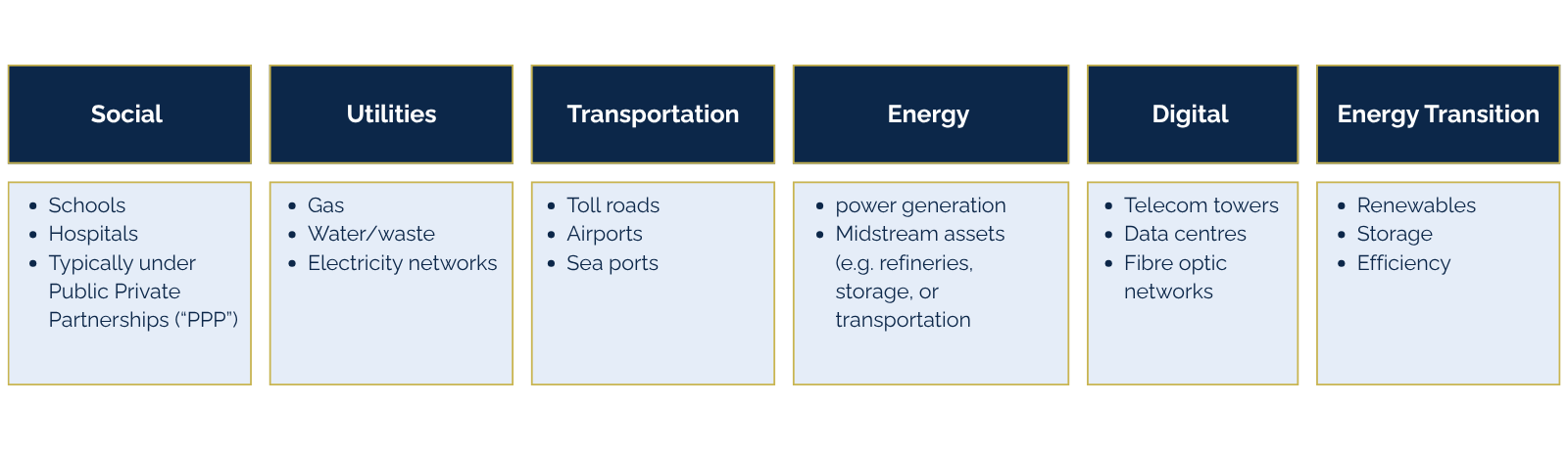 Private infrastructure applies an ‘active ownership’ approach to infrastructure assets and involves direct investment in essential physical assets and systems that underpin economic activity. Private infrastructure managers acquire stakes in utilities, transportation networks, digital/fibre networks, energy facilities, communication systems and social infrastructure with a view to leverage operational improvements, regulatory expertise and capital enhancement strategies to optimise assets. The typical hold period is 5-10 years with exits often to other infrastructure investors or strategic buyers.
