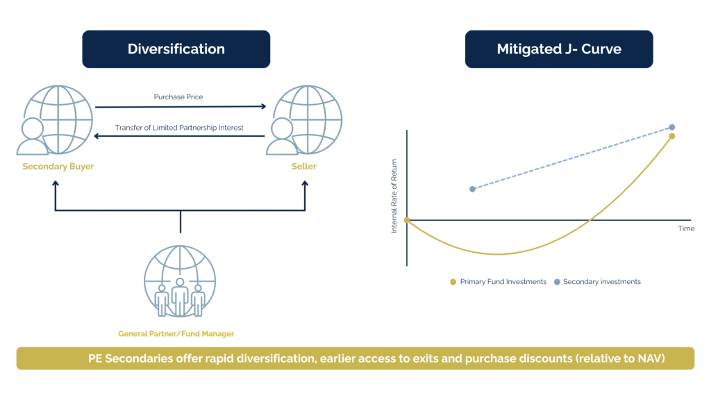 Secondary interests may provide broader diversification because they can relate to multiple funds or to funds with established portfolios of companies or assets. Diversification benefits are not assured, as they depend on the composition of the acquired interests and their underlying exposures.