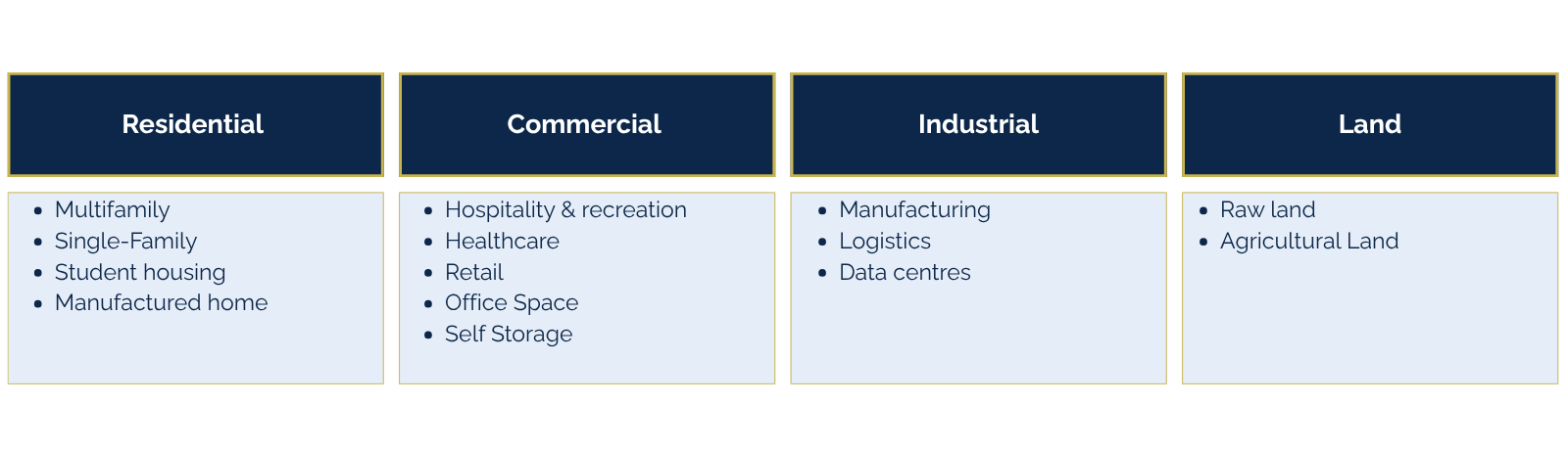 Private real estate applies an ‘active ownership’ approach to real estate assets. This includes private real estate fund managers acquiring land or buildings (not traded on a stock exchange) with a plan to improve or renovate the assets and amenities. Private real estate investments stand in contrast to publicly traded REITs (Real Estate Investment Trusts). Private real estate typically includes land and buildings across a number of sectors (including residential, commercial, industrial and land) and investment strategies (core plus, value add and opportunistic).